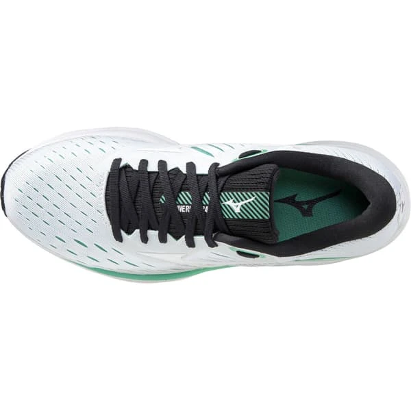 - Mizuno Intercool : Système de ventilation positionné au niveau des points de flexion naturels et de la semelle intermédiaire. Les canaux de ventilation disposés sur toute la longueur de la semelle permettent de réduire les sensations de chaleur et d’humidité