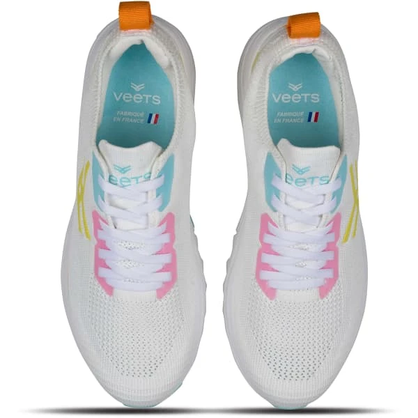 Fabriquée en France et prête à tout, la TRANSITION KNIT MIF1 W de Veets est une chaussure de course pour femme qui aime les chemins et qui s’adresse également à la coureuse universel recherchant une chaussure confortable pour la route.