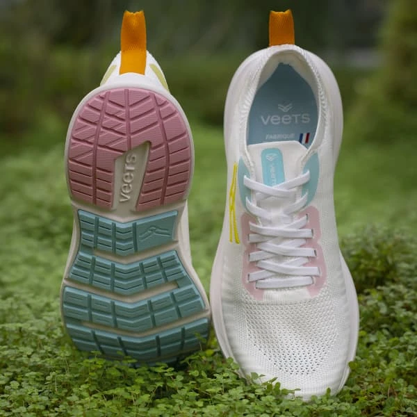 - Instinctech : forme révolutionnaire de la semelle Veets avec une courbure spécifique en 3 points (talon, voûte et avant)