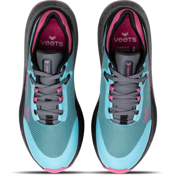 - Veets Intuitive Running : la partie arrière de la semelle est biseautée, ce qui favorise lors de la phase un retour de pied fluide et naturel